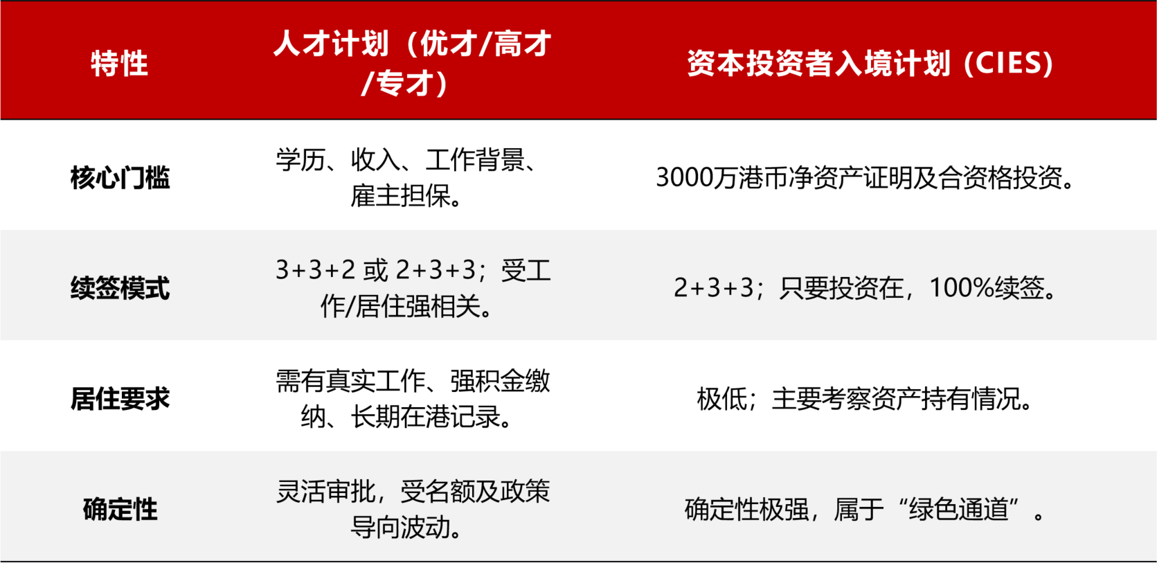 目前獲取香港身份主要分為人才引進(jìn)與資本投資者入境計劃(CIES)兩大體系,兩者在門檻、成本及續(xù)簽確定性上存在顯著差異。