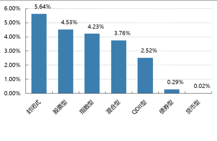 上周,國內(nèi)基金普遍上漲,其中漲幅最大的是封閉式基金,漲幅為 5.64%,漲幅最小的是貨幣型基金,漲幅為 0.02%。